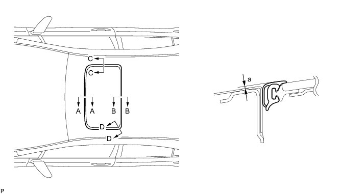 (1) Check the difference in level for "a" between the roof panel and the upper surface of the weatherstrip when the sliding roof glass is fully closed.