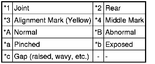 (2) Align the alignment mark (yellow) on the weatherstrip with the middle marks at the corners of the sliding roof panel sub-assembly and install the weatherstrip.