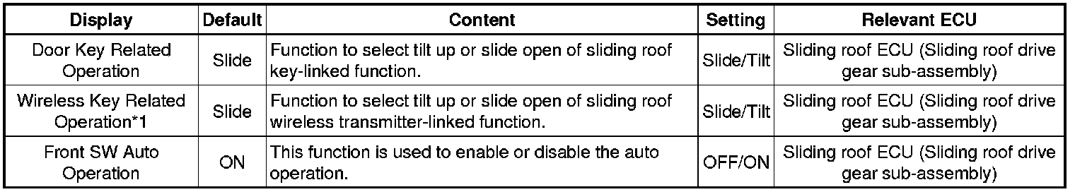 (6) Enter the following menus: Customize Setting / Slide Roof.