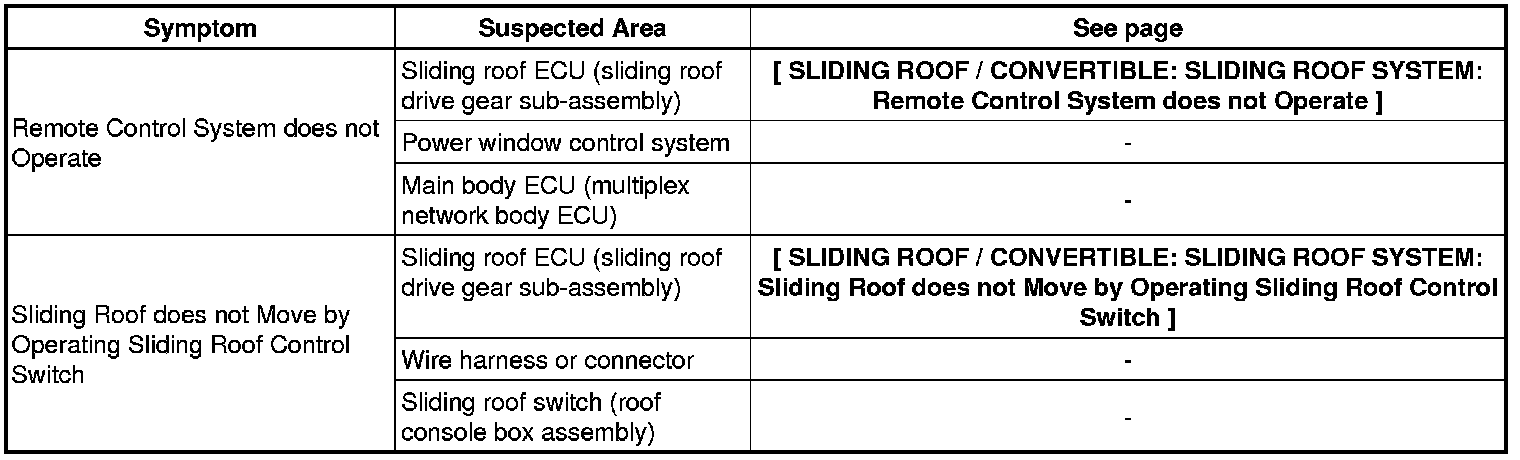 SLIDING ROOF / CONVERTIBLE: SLIDING ROOF SYSTEM: PROBLEM SYMPTOMS TABLE