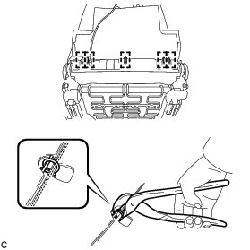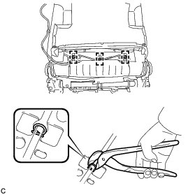 (a) Using hog ring pliers, install the separate type front seat cushion cover to the separate type front seat cushion pad with 16 new hog rings.