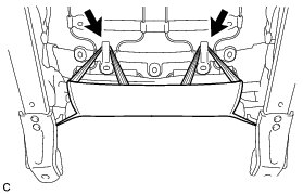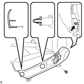 (c) Disengage the 2 claws to remove the front seat lower cushion shield RH.