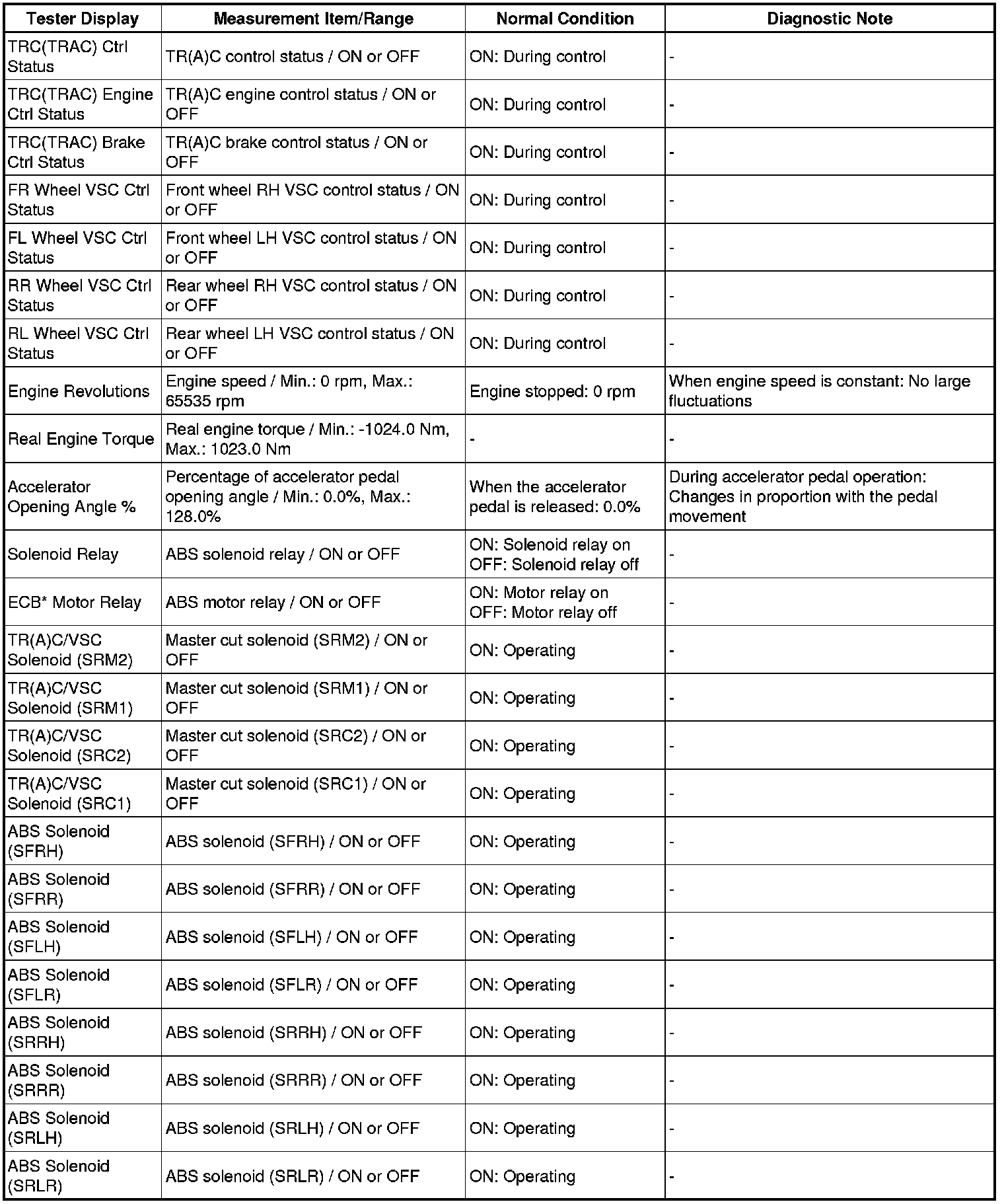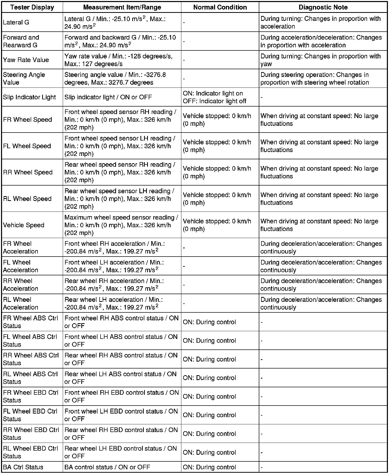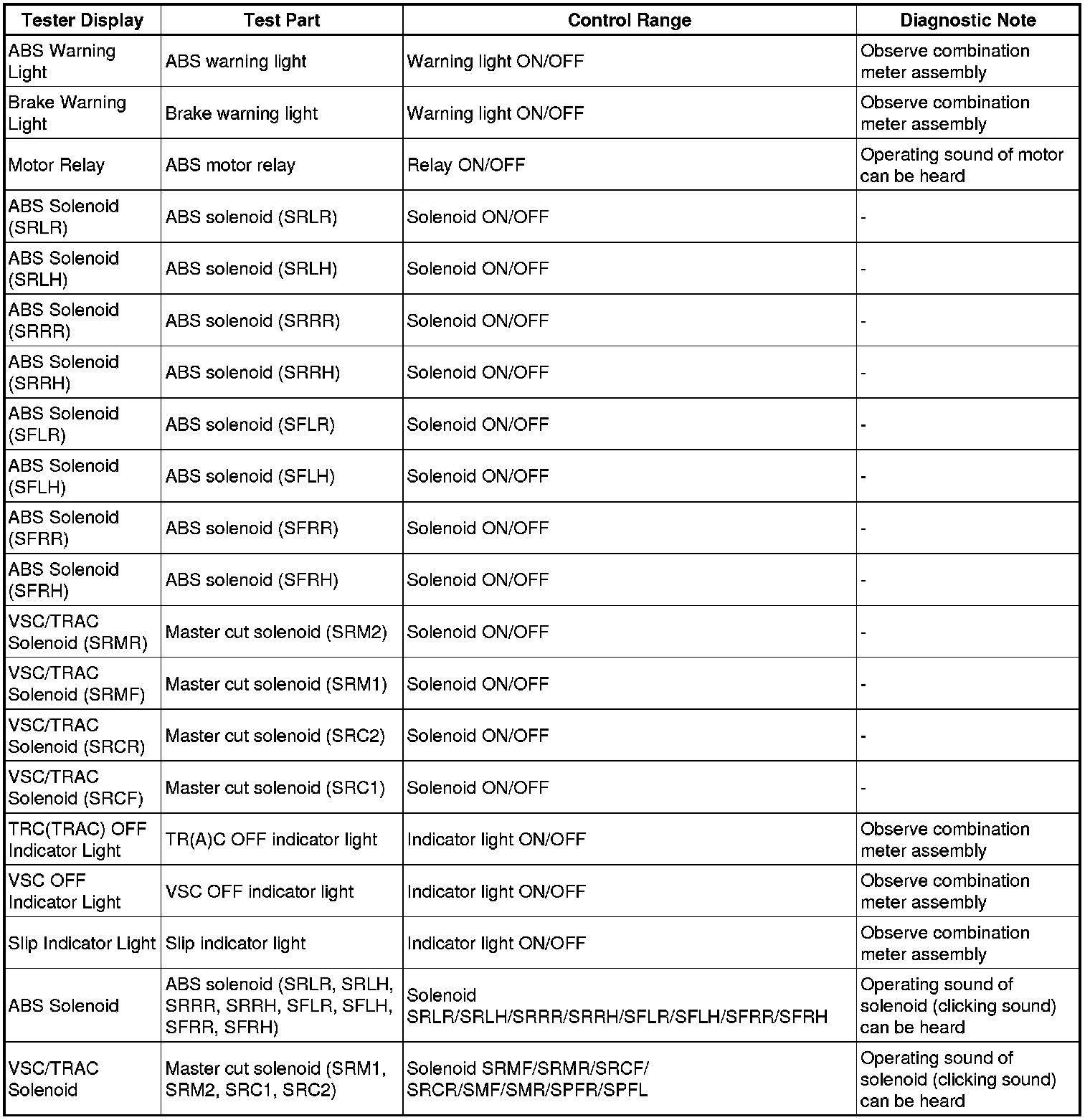 BRAKE CONTROL / DYNAMIC CONTROL SYSTEMS: VEHICLE STABILITY CONTROL SYSTEM: DATA LIST / ACTIVE TEST