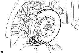 (c) Using a dial indicator, measure the disc runout 10 mm (0.394 in.) away from the outer edge of the front disc.