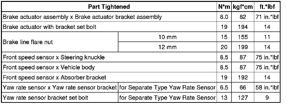 SPECIFICATIONS: BRAKE CONTROL / DYNAMIC CONTROL SYSTEMS: TORQUE SPECIFICATIONS