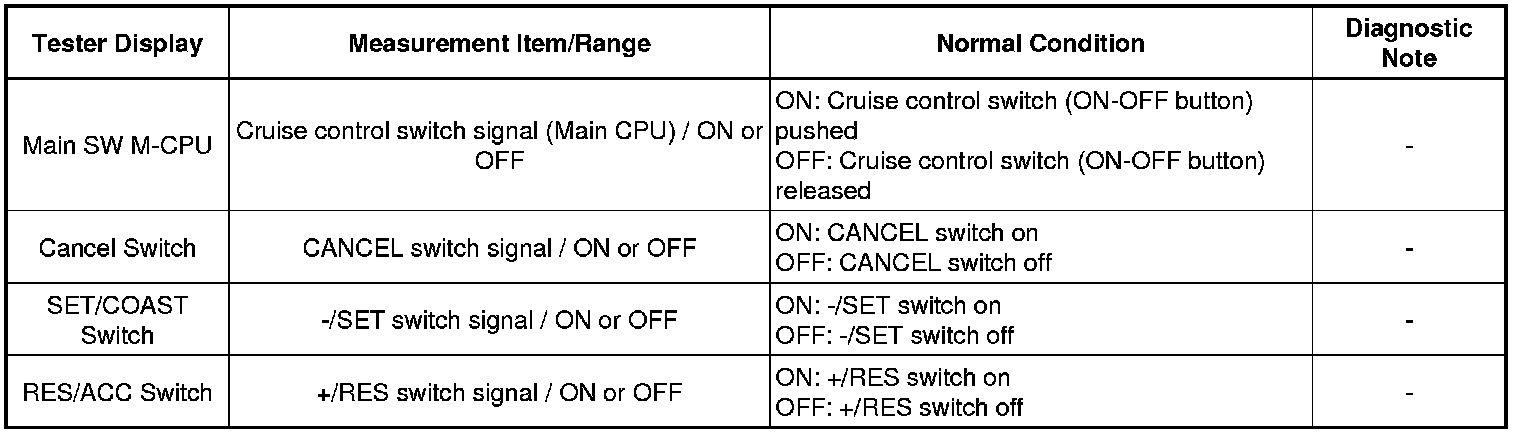 CRUISE CONTROL: CRUISE CONTROL SYSTEM: Cruise Control Switch Circuit