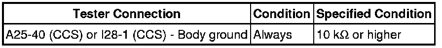 (c) After setting the spiral cable sub-assembly to the center position, rotate the spiral cable sub-assembly 2.5 times clockwise. Then while rotating the spiral cable sub-assembly 5 times counterclockwise, measure the resistance according to the value(s) in the table below.