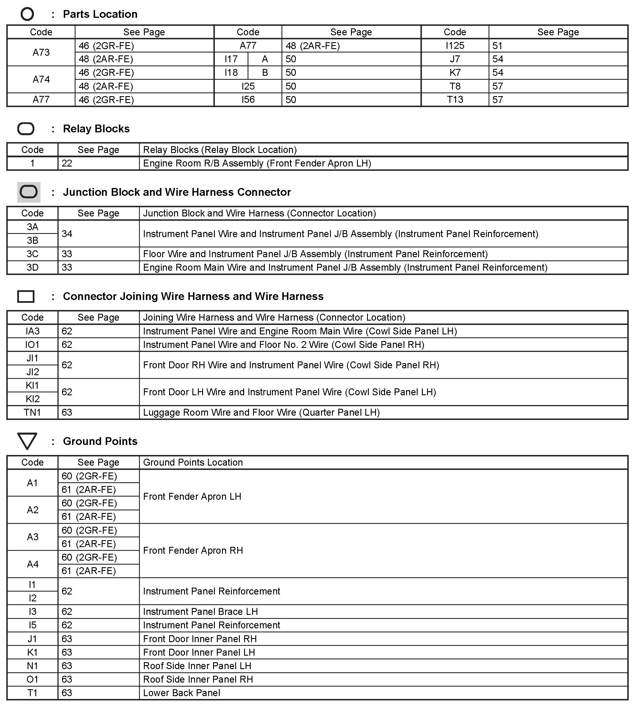 Locations: The locations of components, connectors, ground points, and splices referred to within these diagrams can be found at Vehicle Locations. Locations