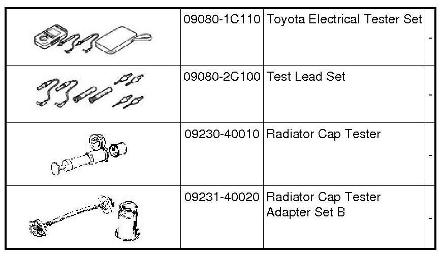 PREPARATION: 2AR-FE COOLING: RECOMMENDED TOOLS