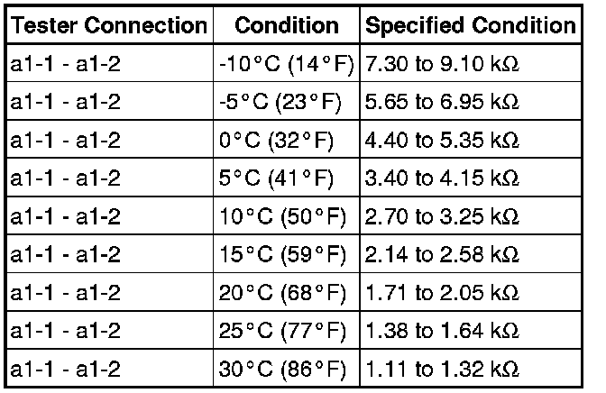If the resistance is not as specified, replace the evaporator temperature sensor (No. 1 cooler thermistor).