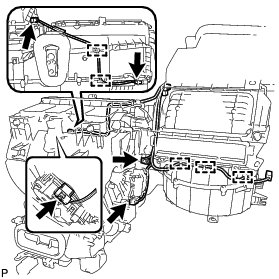 * Make sure that the No. 1 air conditioning radiator damper servo sub-assembly are fully pushed into position.