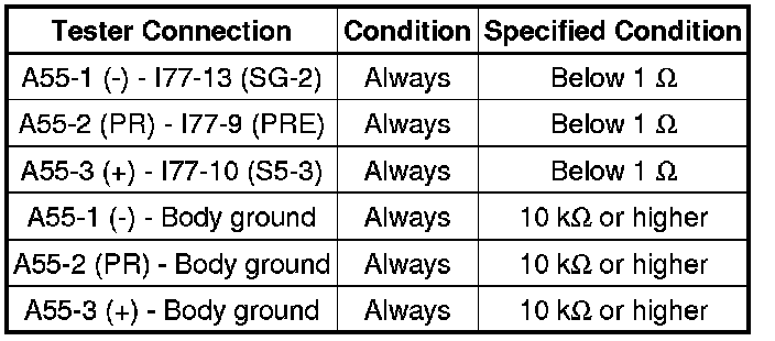 If the resistance is not as specified, repair the wire harness.