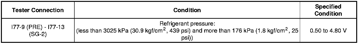 If the voltage is not as specified, replace the air conditioning pressure sensor.