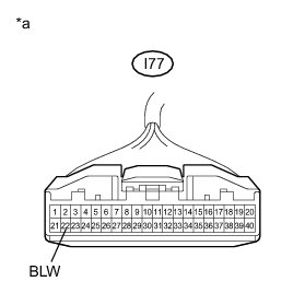 (e) Measure the waveform between terminal I77-22 (BLW) of the air conditioning amplifier assembly and body ground.