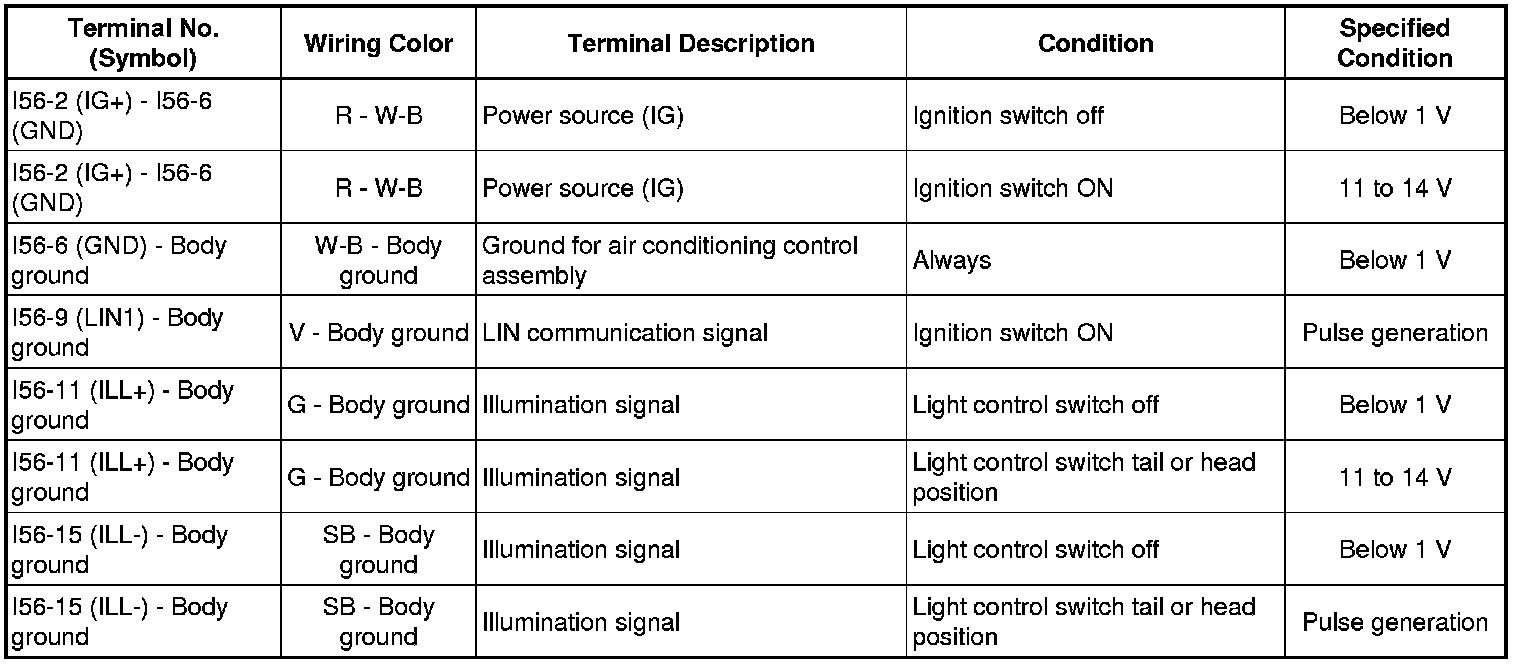 Check from the rear of the connector while it is connected to the air conditioning control assembly.