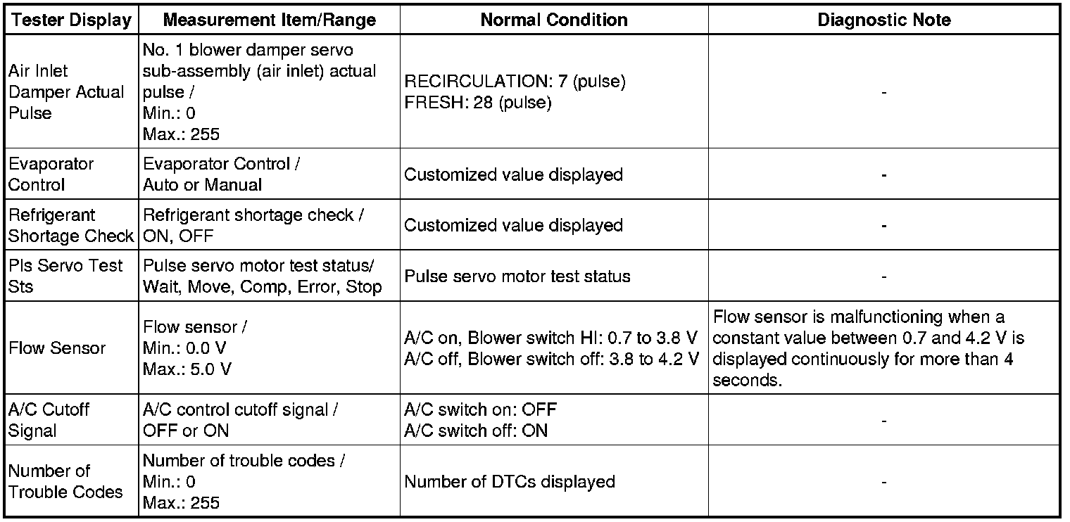 HEATING / AIR CONDITIONING: AIR CONDITIONING SYSTEM (for Manual Air Conditioning System): DATA LIST / ACTIVE TEST
