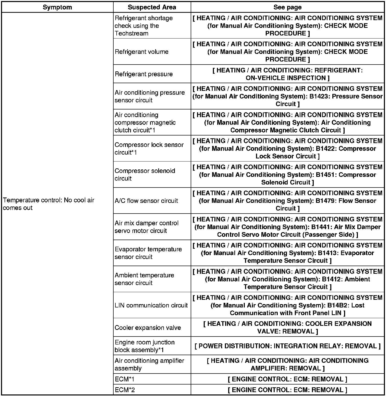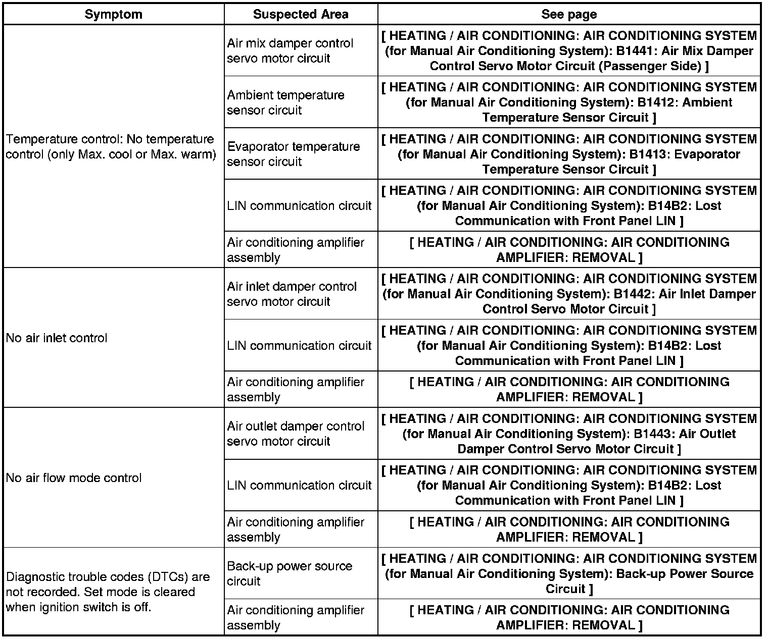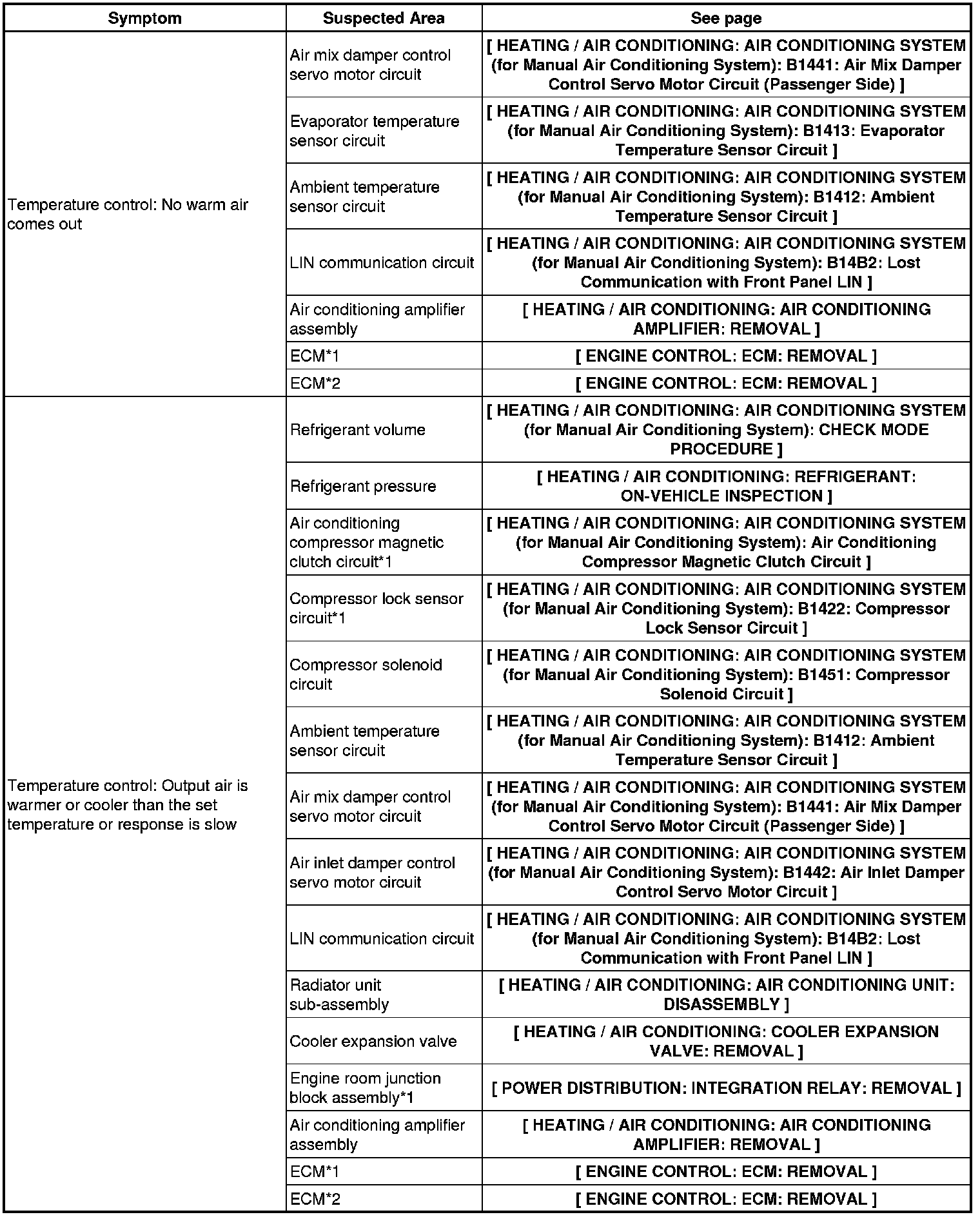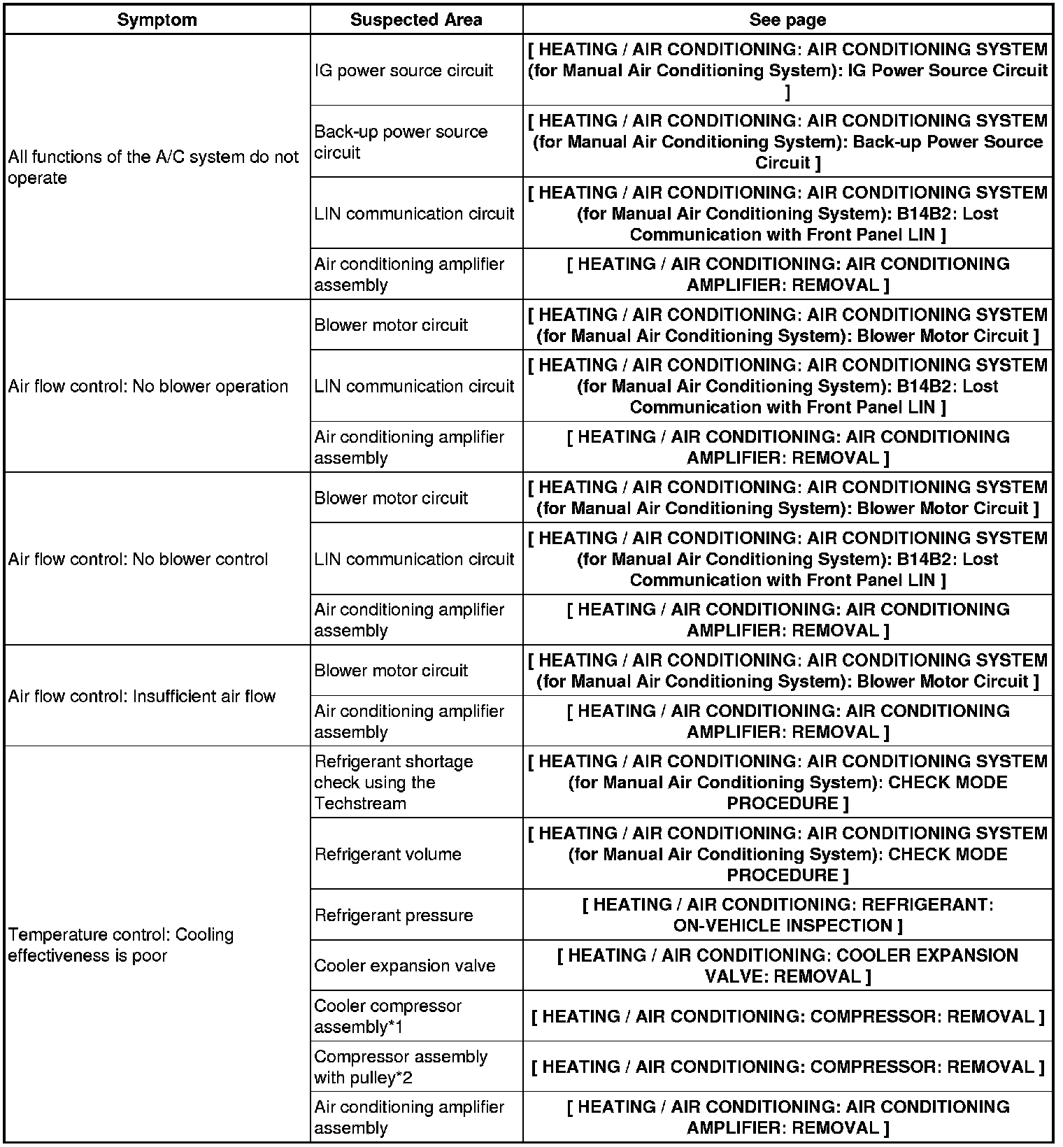 HEATING / AIR CONDITIONING: AIR CONDITIONING SYSTEM (for Manual Air Conditioning System): PROBLEM SYMPTOMS TABLE
