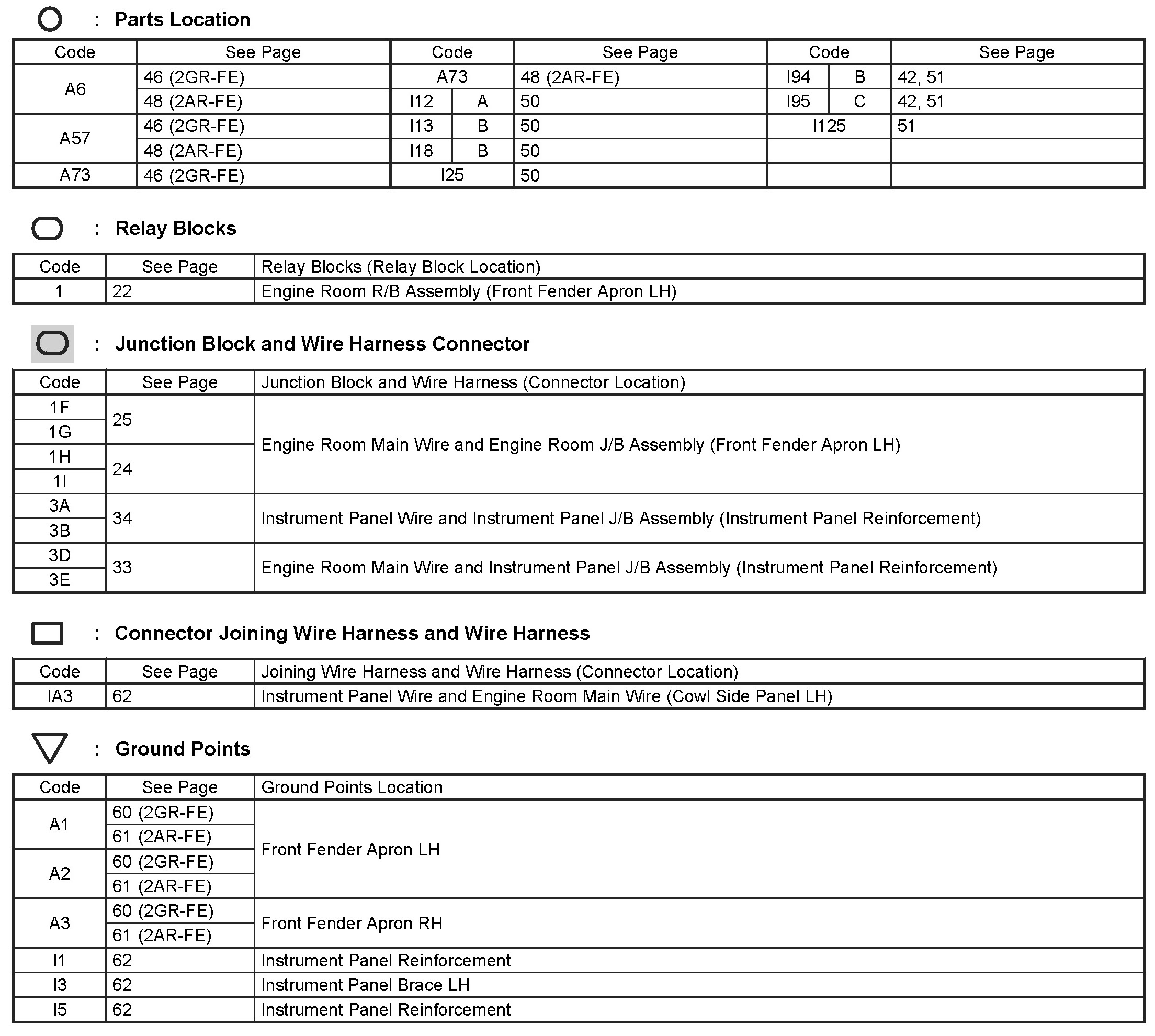 Locations: The locations of components, connectors, ground points, and splices referred to within these diagrams can be found at Vehicle Locations. Locations