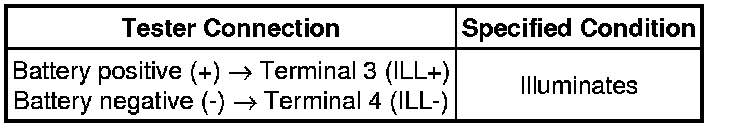 (1) Apply battery voltage to the headlight leveling switch and check that the switch illuminates.