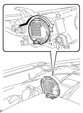 (a) Turn the socket of the headlight light control ECU sub-assembly in the direction indicated by the arrow shown in the illustration to connect it.