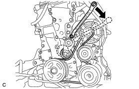 (a) Attach a wrench to the hexagonal portion of the belt tensioner as shown in the illustration, rotate the belt tensioner clockwise, and remove the V-ribbed belt.