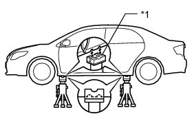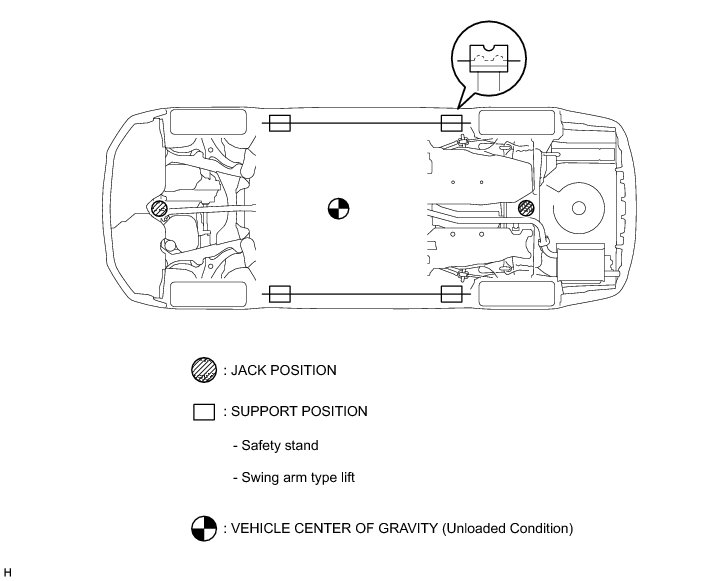 (b) When removing any heavy components like the engine or transaxle, the vehicle center of gravity will shift. To stabilize the vehicle, place a balance weight in a location that will prevent the vehicle from rolling or shifting, or place a transmission jack under the appropriate jack position at the opposite end of the vehicle.