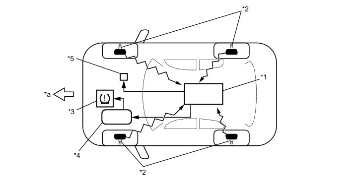 (a) During initialization, the tire pressure warning valve and transmitters measure the inflation pressure of the tires, and register the signals that are transmitted into the tire pressure warning ECU and receiver at a frequency of about once per minute. The initialization process is completed when signals from all tires (except the spare tire) have been received.
