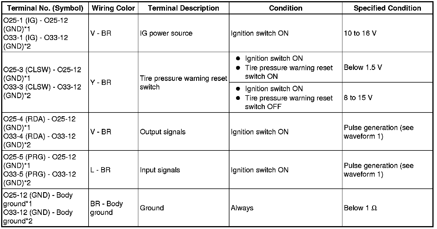 TIRE PRESSURE MONITORING: TIRE PRESSURE WARNING SYSTEM: TERMINALS OF ECU