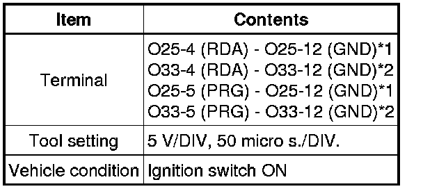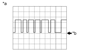 The waveform shown in the illustration is an example. If the tester displays a waveform that alternates between high and low, where high is a voltage that is between the IG power source voltage and a voltage 2.2 V lower than the IG power source voltage, and where low is a voltage of between 0 and 1.2 V, the ECU can be judged normal.