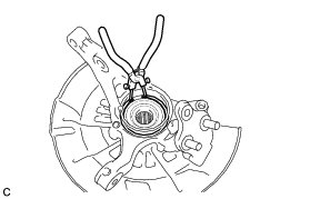 (a) Using snap ring pliers, remove the front axle hub hole snap ring.