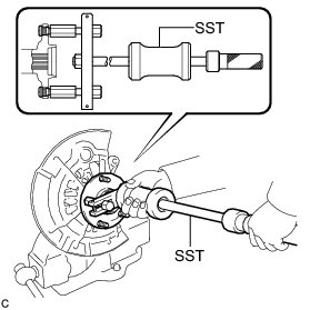 (b) Using SST, remove the front axle hub sub-assembly.