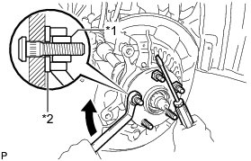 (a) Position the front axle hub bolt to be removed as shown in the illustration.