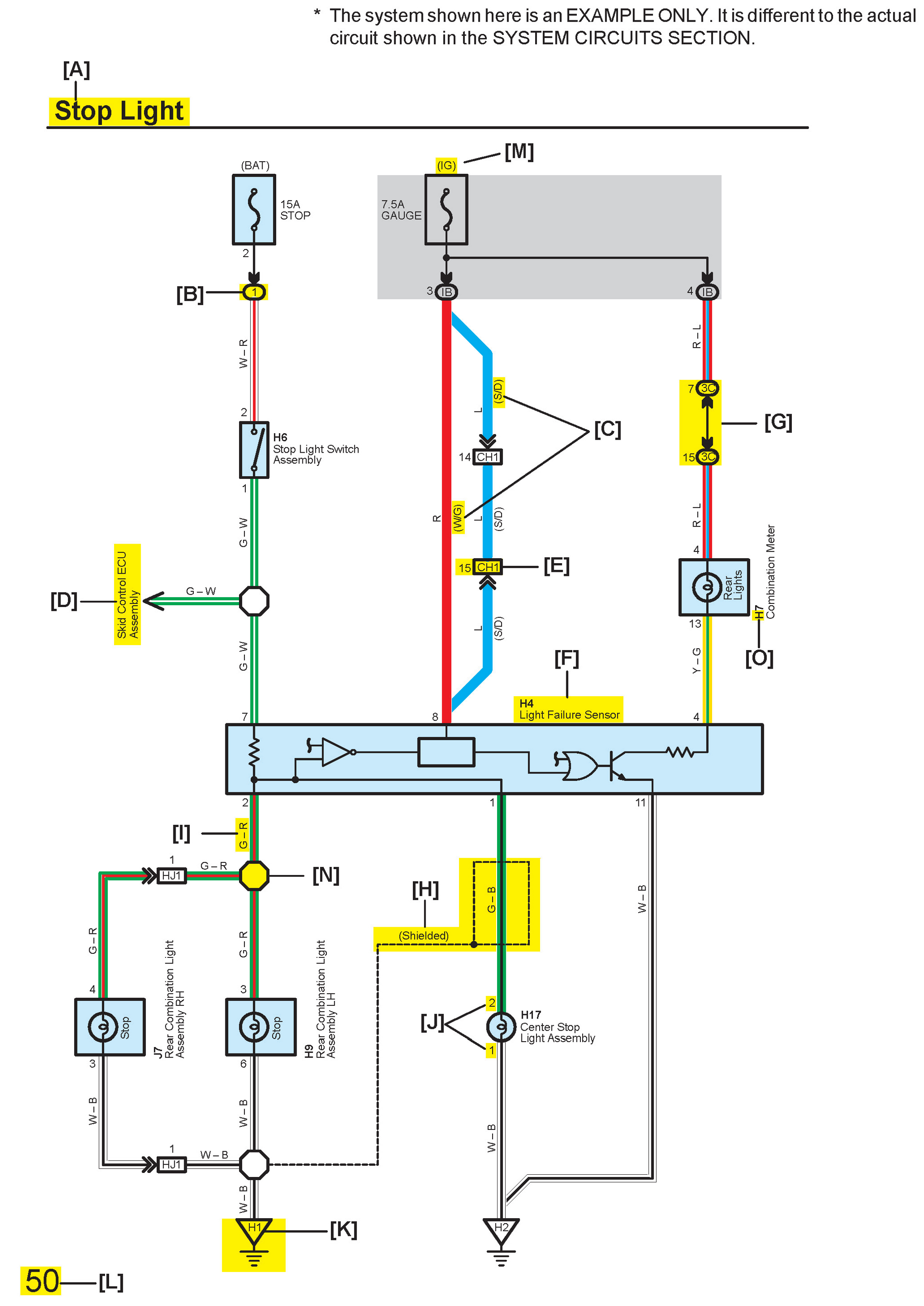 Wire colors are indicated by an alphabetical code.