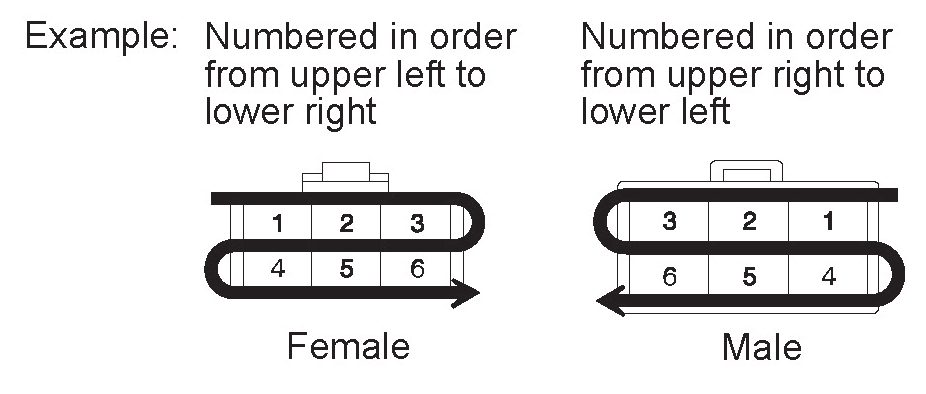 The numbering system is different for female and male connectors.