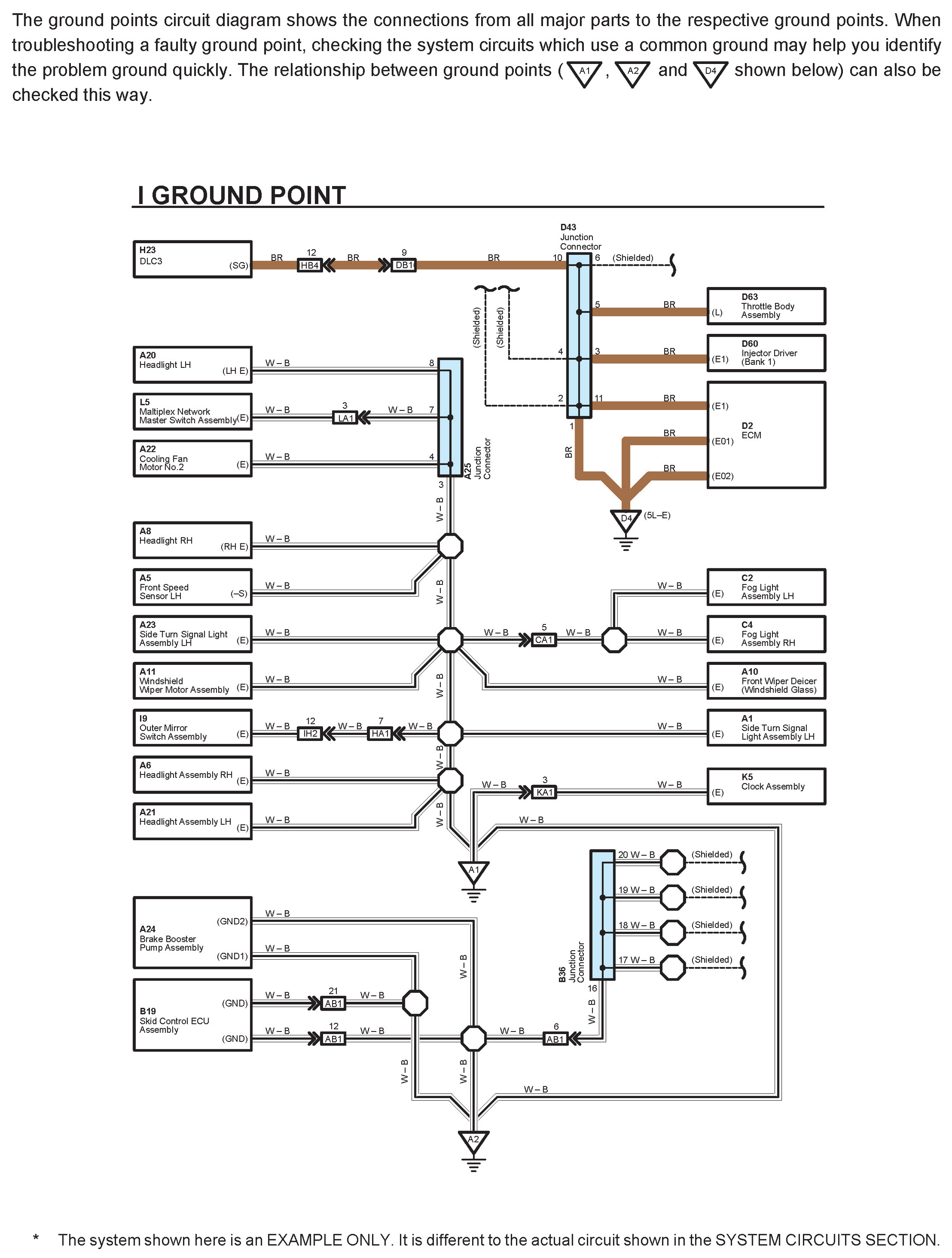 When the circuit operation is understood, begin troubleshooting of the problem circuit to isolate the cause. Use Relay Location and Electrical Wiring Routing to find each part, junction block and wiring harness connectors, wiring harness and wiring harness connectors and ground points of each system circuit. Internal wiring for each junction block is also provided for better understanding of connection within a junction block.