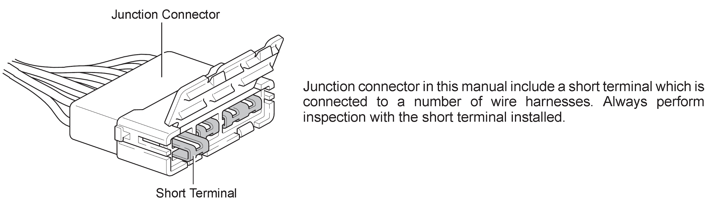 Indicates a connector which is connected to a short terminal.