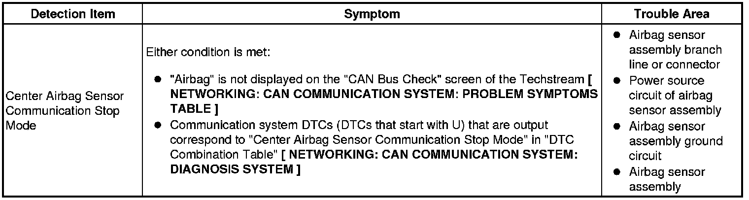 NETWORKING: CAN COMMUNICATION SYSTEM: Center Airbag Sensor Communication Stop Mode