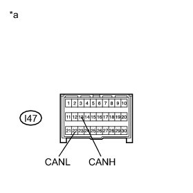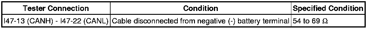 * Before measuring the resistance of the CAN bus, turn the ignition switch off and leave the vehicle for 1 minute or more without operating the key, switches or opening or closing the doors. After that, disconnect the cable from the negative (-) battery terminal and leave the vehicle for 1 minute or more before measuring the resistance.