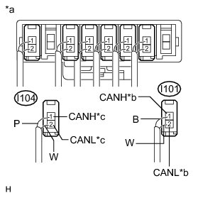 (b) Disconnect the CAN No. 2 junction connectors (I104 and I101).