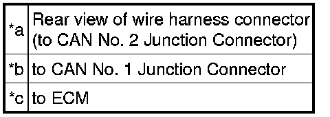 * Connectors that connect to the CAN junction connector can be distinguished by color of their CAN bus lines. When the connectors have been disconnected from the CAN junction connector, reconnecting the connectors to non-original positions on the CAN junction connector does not affect system performance. However, it is preferred to reconnect the connectors to their original positions to avoid negative effects on the wiring such as tension on the wiring harnesses, and to make future maintenance easier.