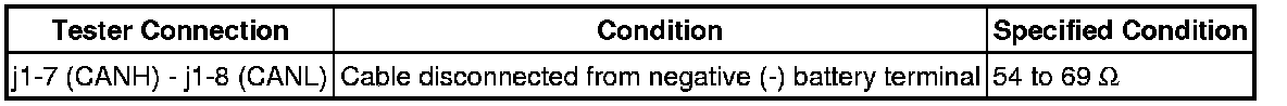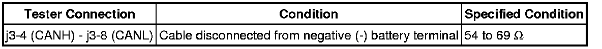 * Before measuring the resistance of the CAN bus, turn the ignition switch off and leave the vehicle for 1 minute or more without operating the key, switches or opening or closing the doors. After that, disconnect the cable from the negative (-) battery terminal and leave the vehicle for 1 minute or more before measuring the resistance.