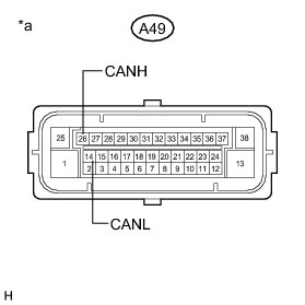 * Before measuring the resistance of the CAN bus, turn the ignition switch off and leave the vehicle for 1 minute or more without operating the key, switches or opening or closing the doors. After that, disconnect the cable from the negative (-) battery terminal and leave the vehicle for 1 minute or more before measuring the resistance.
