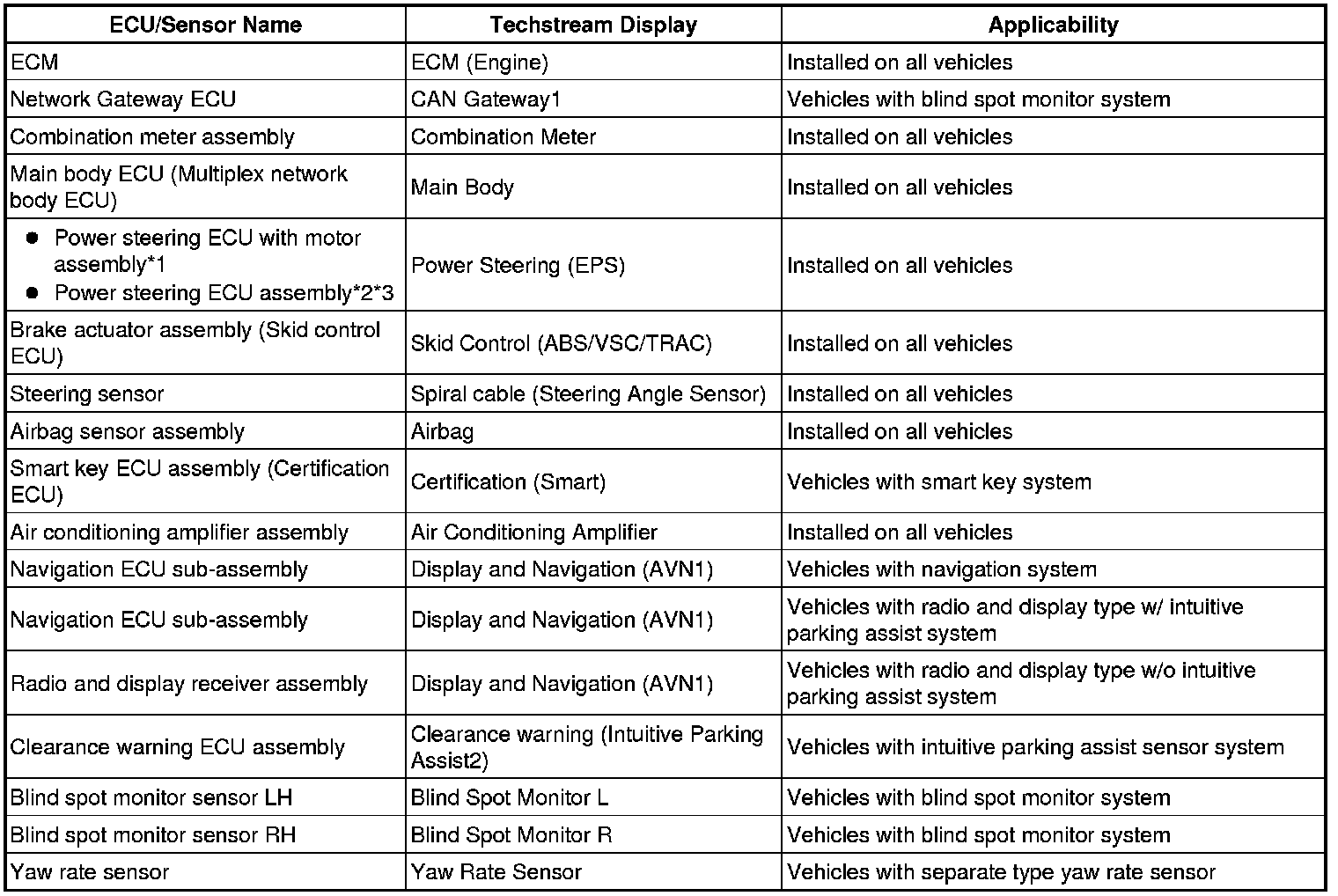 * *1: ECUs that are present in the vehicle but are not displayed on the CAN Bus Check.