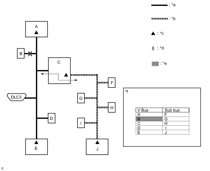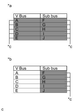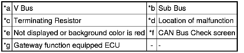 * In the CAN bus check, it is possible to confirm the communication status of ECUs connected to the V bus after connecting the Techstream to the DLC3. As for sub buses, it is possible to confirm which sub bus connected ECUs can communicate with a gateway function equipped ECU on the V bus.