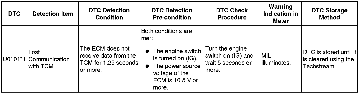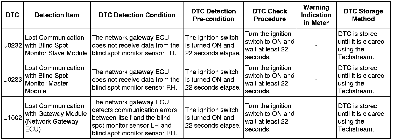 * This DTC table is from another model, and is only used here to show an example of DTCs that are output when there is an open in a CAN branch line for the main body ECU. This table does not show DTCs applicable to this vehicle.