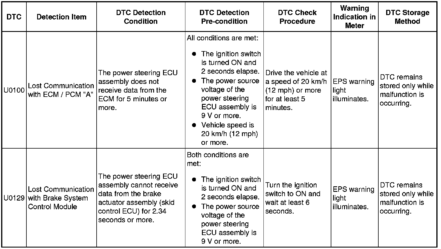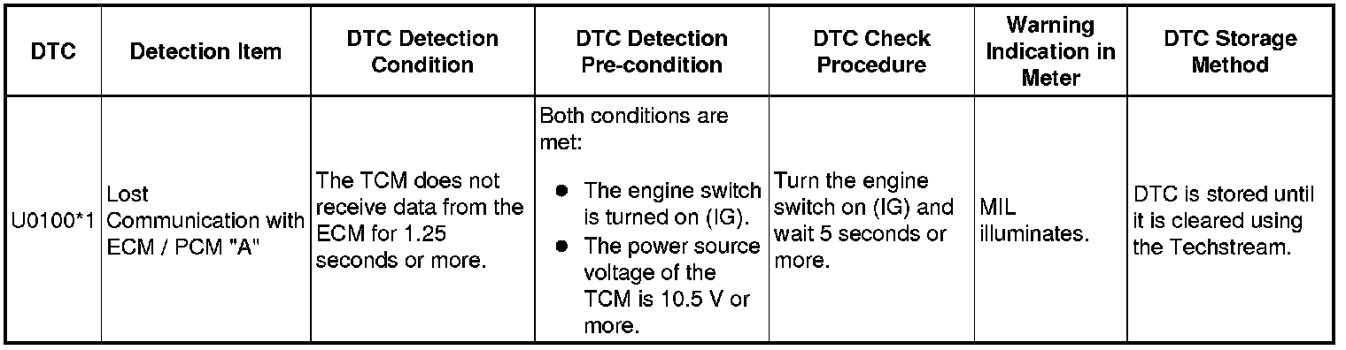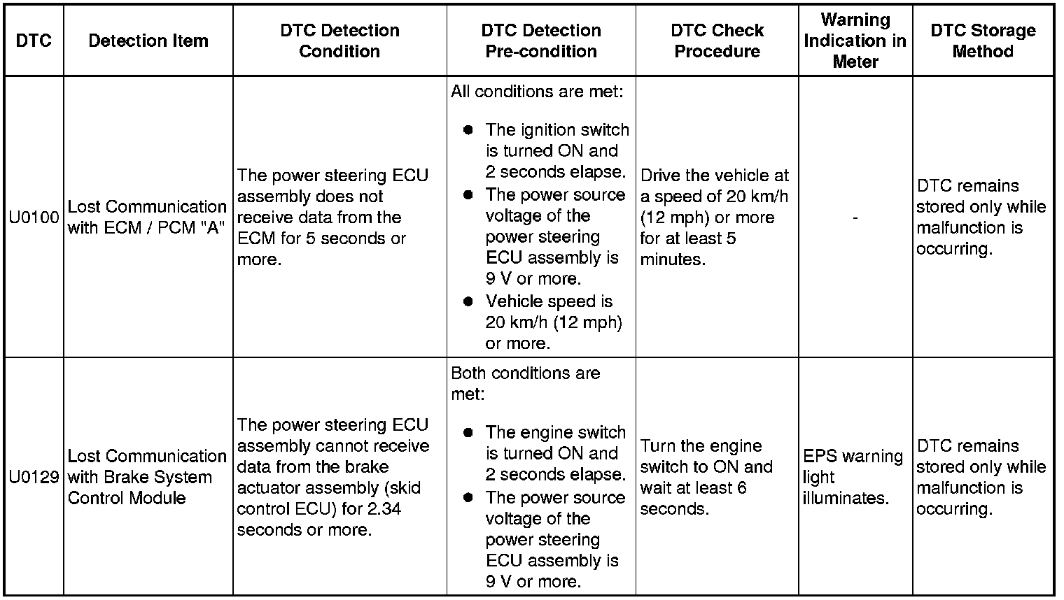 Communication DTCs (DTCs that start with U) indicate a communication error between the ECU that stores the DTC and the ECU that is indicated by the DTC.