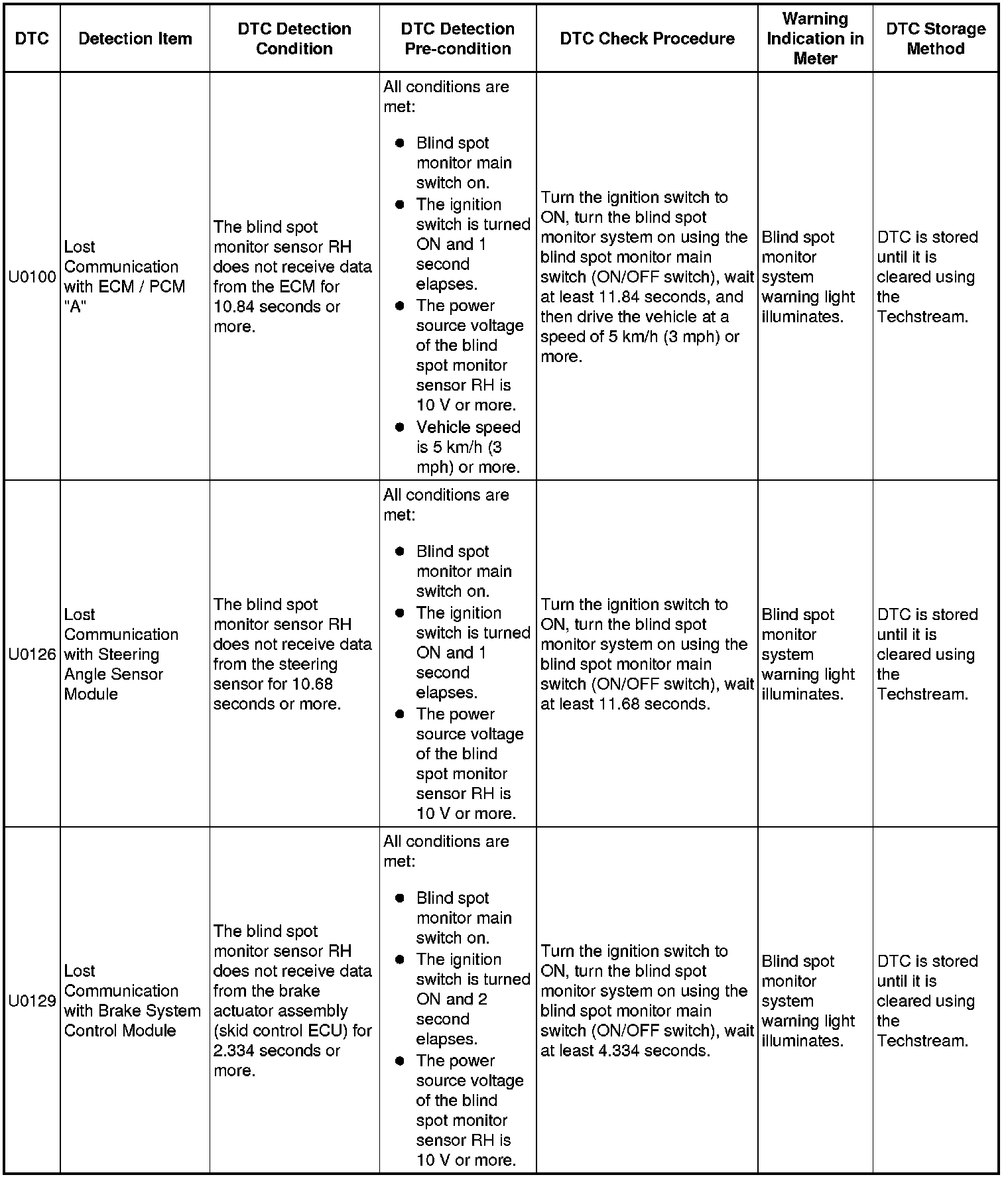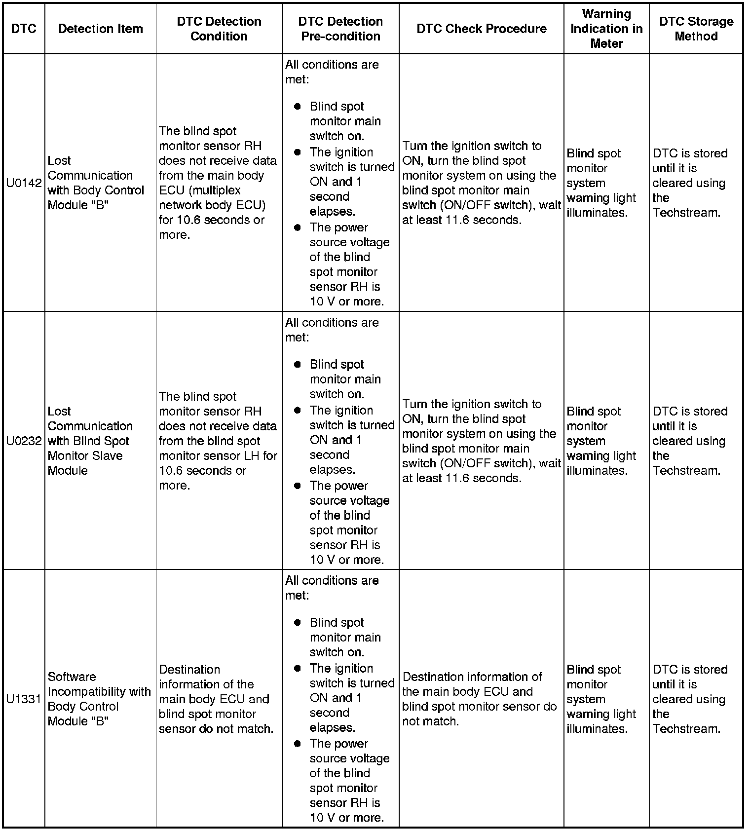 (u) Blind Spot Monitor Sensor RH / Techstream Display "Blind Spot Monitor Master"
