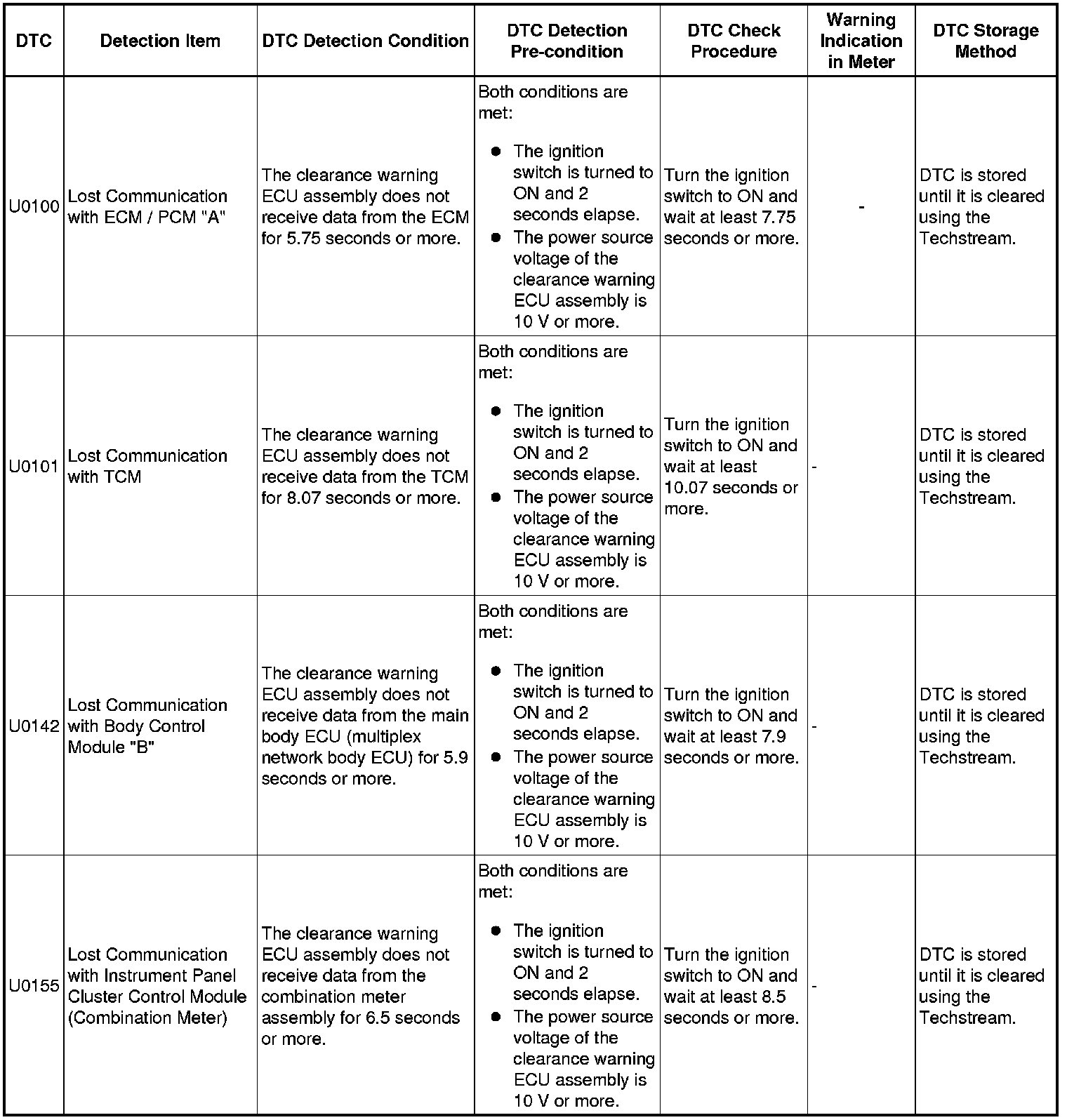 Clearance Warning ECU Assembly / Techstream Display "Intuitive P/A"