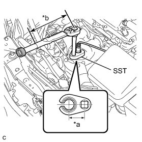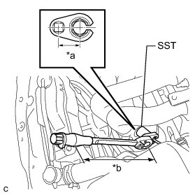 * The "with SST" torque value is effective when using SST with a fulcrum length of 30 mm (1.18 in.) and a torque wrench with a fulcrum length of 300 mm (11.81 in.) Service Precautions.