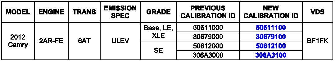 ^ Calibration ID(S) [Refer to the Calibration Information chart for the NEW CALIBRATION ID]